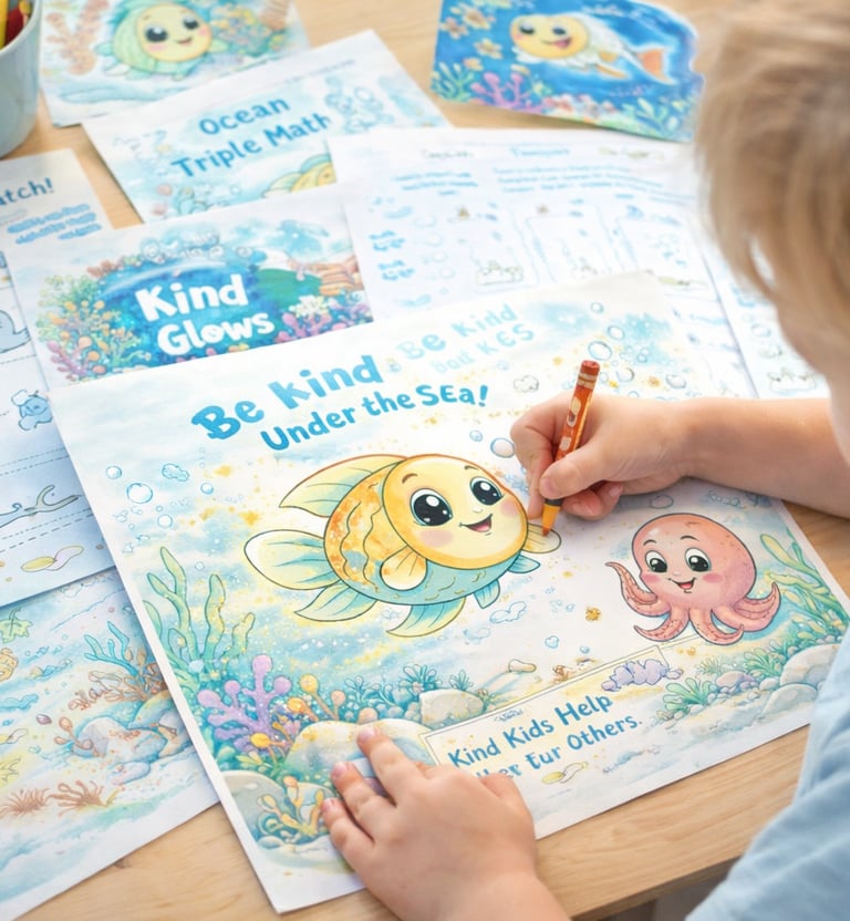 Screen-free printable activities that inspire little hands and big imaginations. Download a free Kindness Calendar Printable and sign up for a free Ocean craft every month!