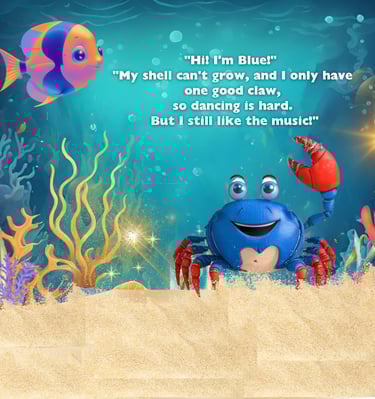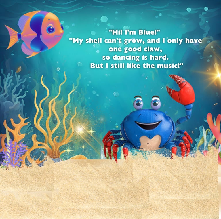 A gentle ocean friend who sparks kindness and creativity in children through calming stories and fun activities.